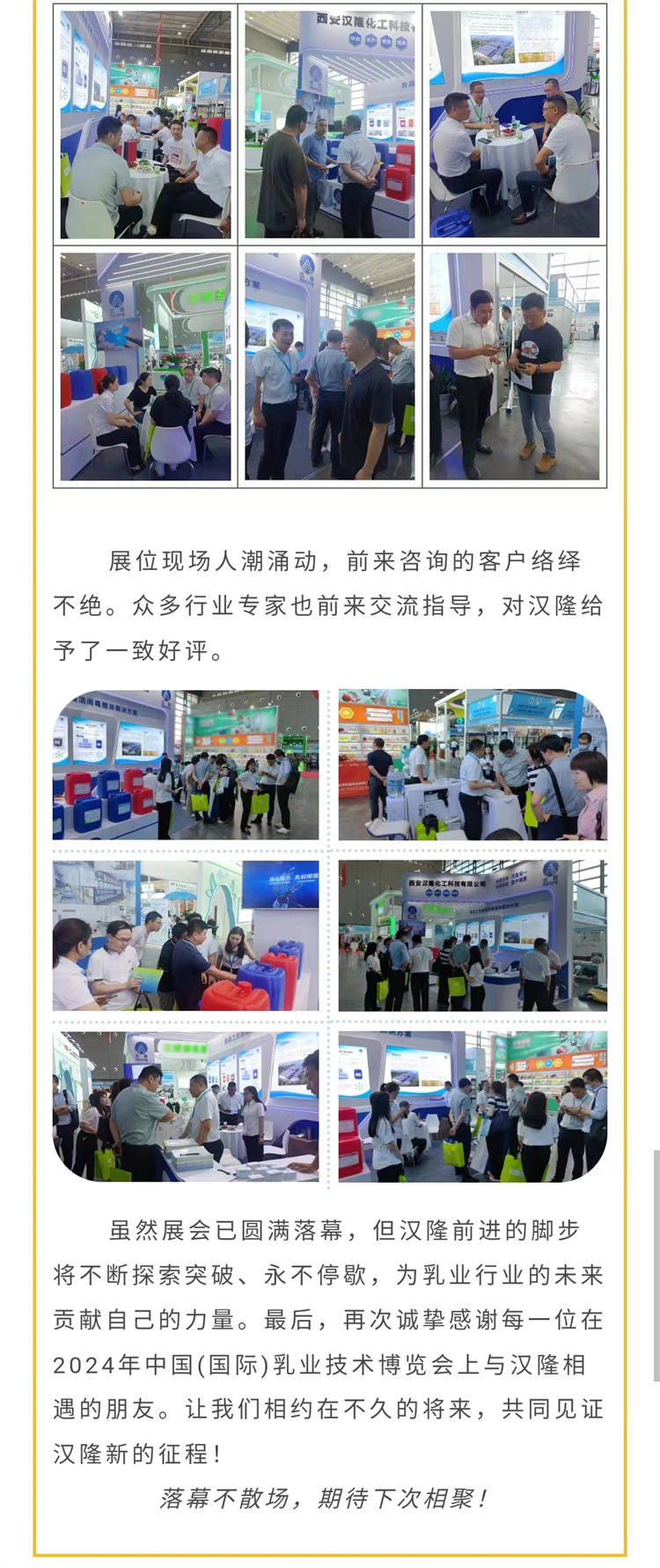 漢隆公司參加中國乳制品工業(yè)協(xié)會第三十次年會暨2024年中國(國際)乳業(yè)技術(shù)博覽會圓滿收官!